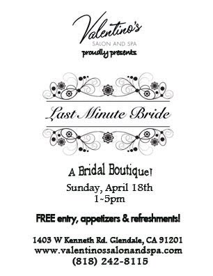 In conjunction with Just Wenderful and Better Than Naked Vintage & Handmade, Valentino’s proudly presents LAST MINUTE BRIDE! There are always last minute details to be filled in order to make the Wedding Day perfect, so that’s why local businesses are banding together and bringing the last minute bride’s one-stop bridal shop!.