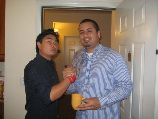 My husband to-be and man of honor getting ready to…do whatever they did. I conveniently snuck in this picture today because it’s my husband’s birthday! Happy birthday babe! I ♥ you!